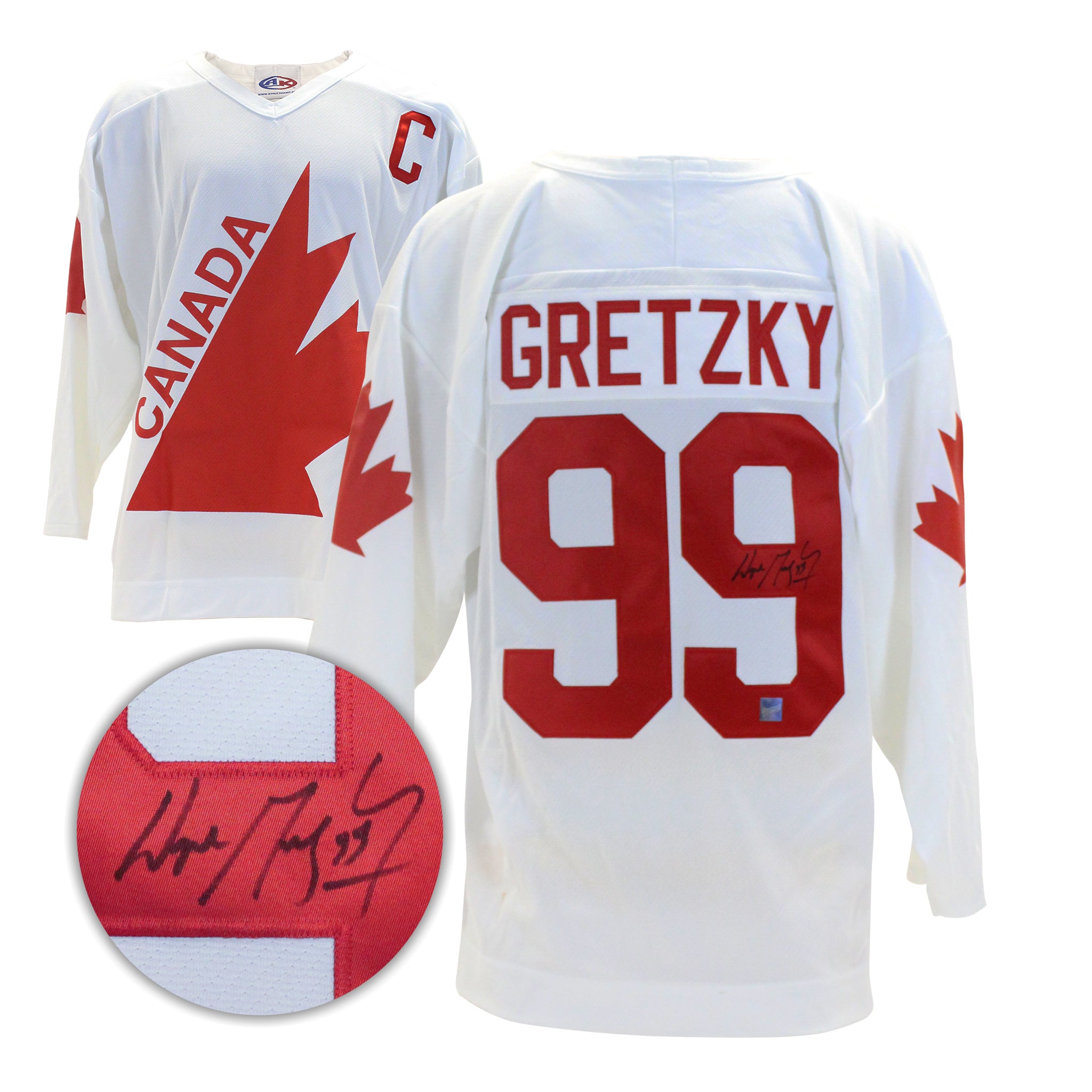 This Wayne Gretzky Team Canada jersey with name and numbers professionally sewn on comes personally autographed by Wayne Gretzky. This jersey comes with a certificate of authenticity and hologram from Frameworth to ensure authenticity. Signatures may vary. Made in Canada.