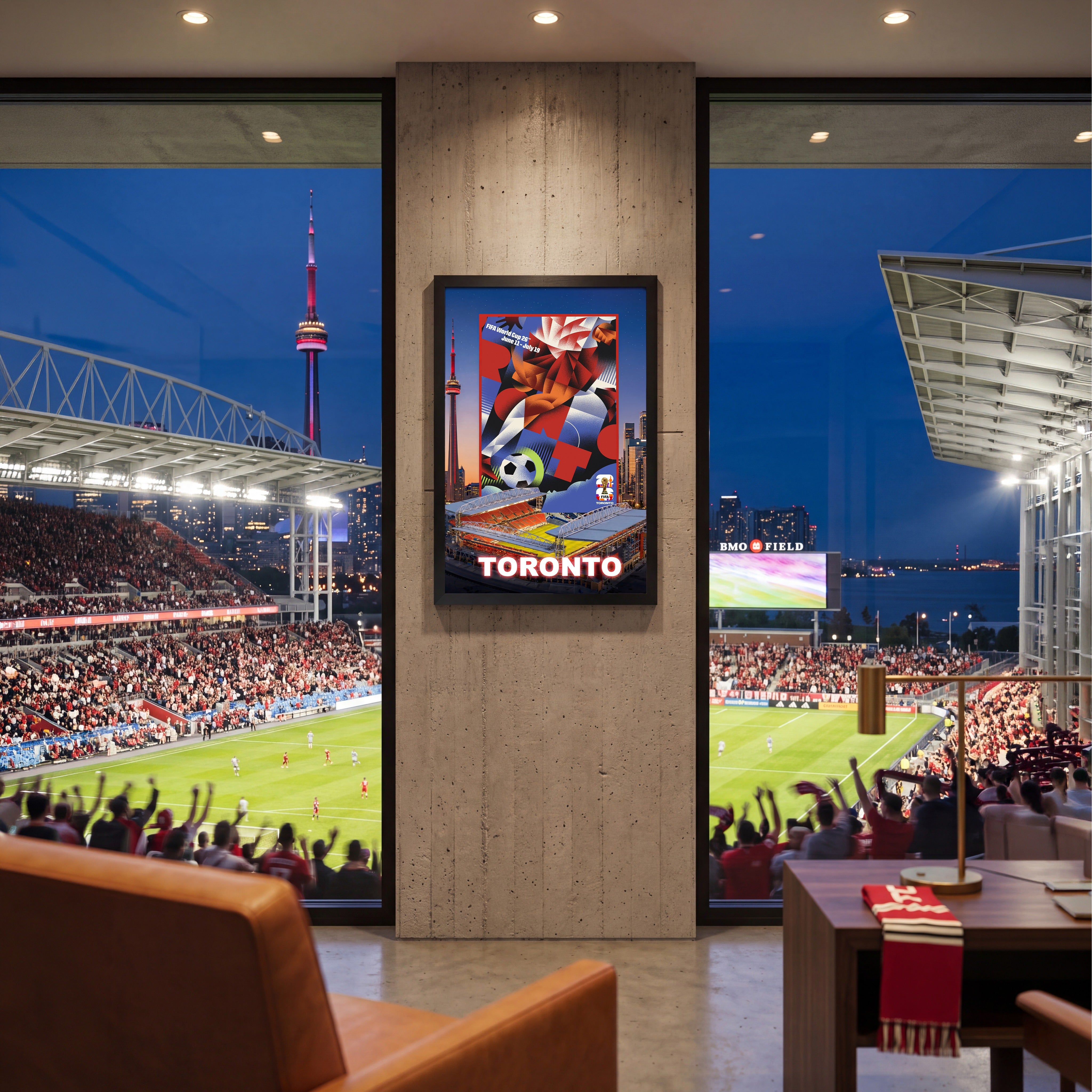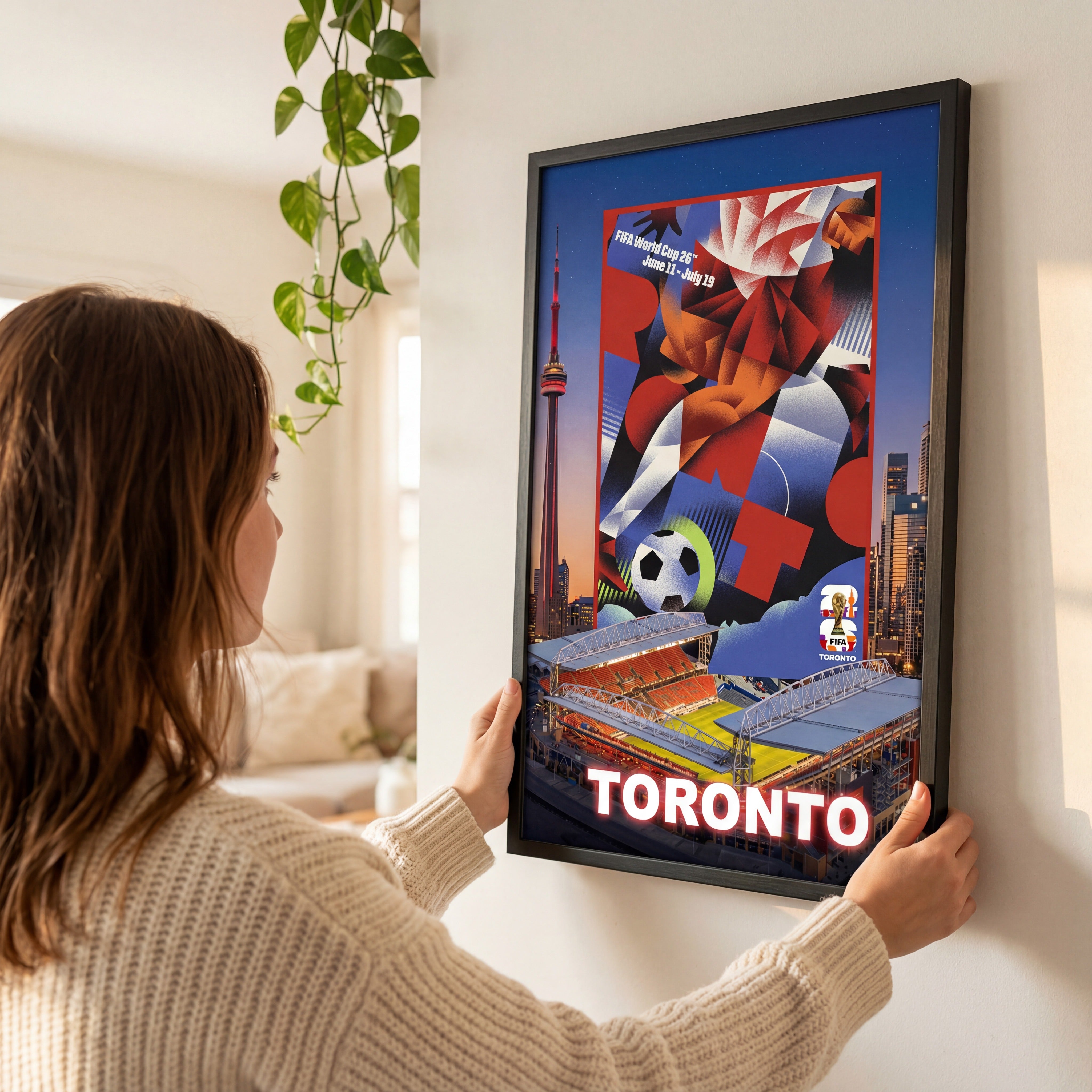 Toronto is a 2026 FIFA World Cup Host City. Celebrate the first-ever tri-nation World Cup (USA · Canada · Mexico · June 11 – July 19, 2026) with this officially licensed commemorative framed poster, handcrafted in Canada by Frameworth Sports Marketing Inc. — North America's most trusted custom sports memorabilia specialist since 1992.