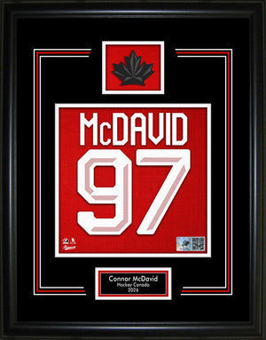 Pure speed, pure skill, pure MacKinnon. This premium framed piece features Nathan MacKinnon's #29 in Hockey Canada colours — a sharp, eye-catching tribute to one of the most explosive players in hockey.