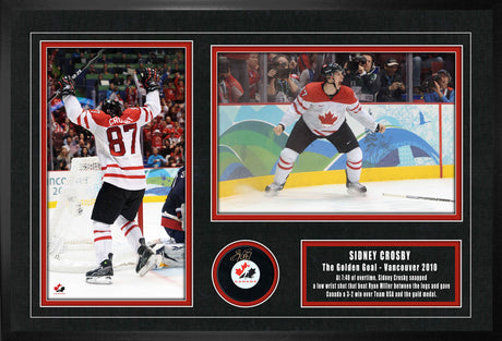 $79999 CADUnit price /UnavailableSidney Crosby Team Canada Signed Framed 8x10 Golden Goal and Vancouver Skyline Photos