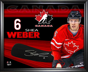 This Hockey Canada official game puck has been hand signed by Carey Price himself. The puck comes framed alongside an 8x10" action shot. These items come set in Frameworth's renowned framing with black matting and a laser etching of the player name and team. and Certificate of authenticity included.FINISHED SIZE 18X20.5"