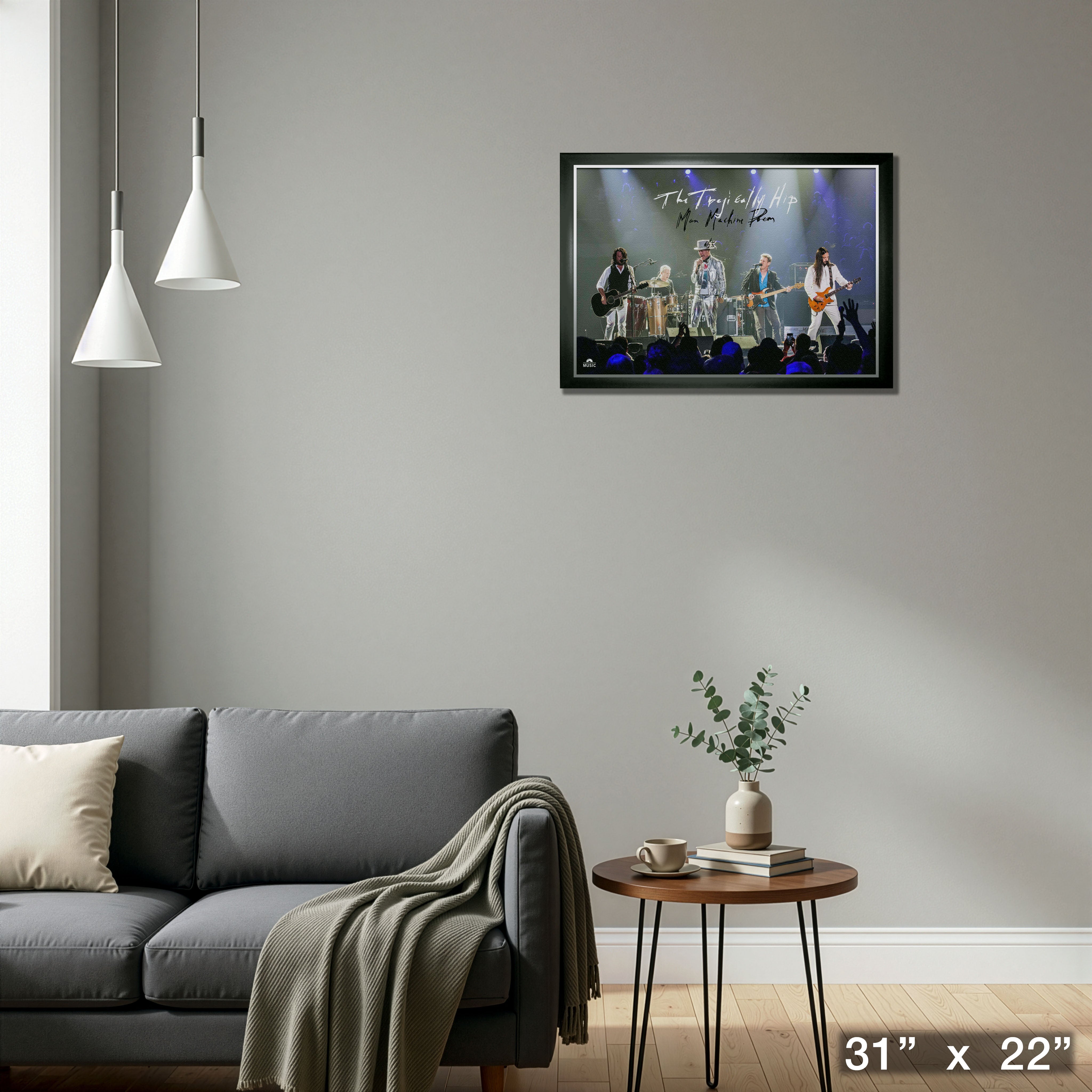 This is a framed 20x29 print of The Tragically Hip. The Tragically Hip are widely seen as the face of Canadian music. Downie’s songwriting has accompanied many memories of campfires and cottages across Canada for 30+ years. Downie passed away in October of 2017, after completing a legendary final tour, in which The Hip played a nationally televised final concert in their hometown of Kingston, Ontario. That is where the image featured on this print came from. Frame size: 21x30”