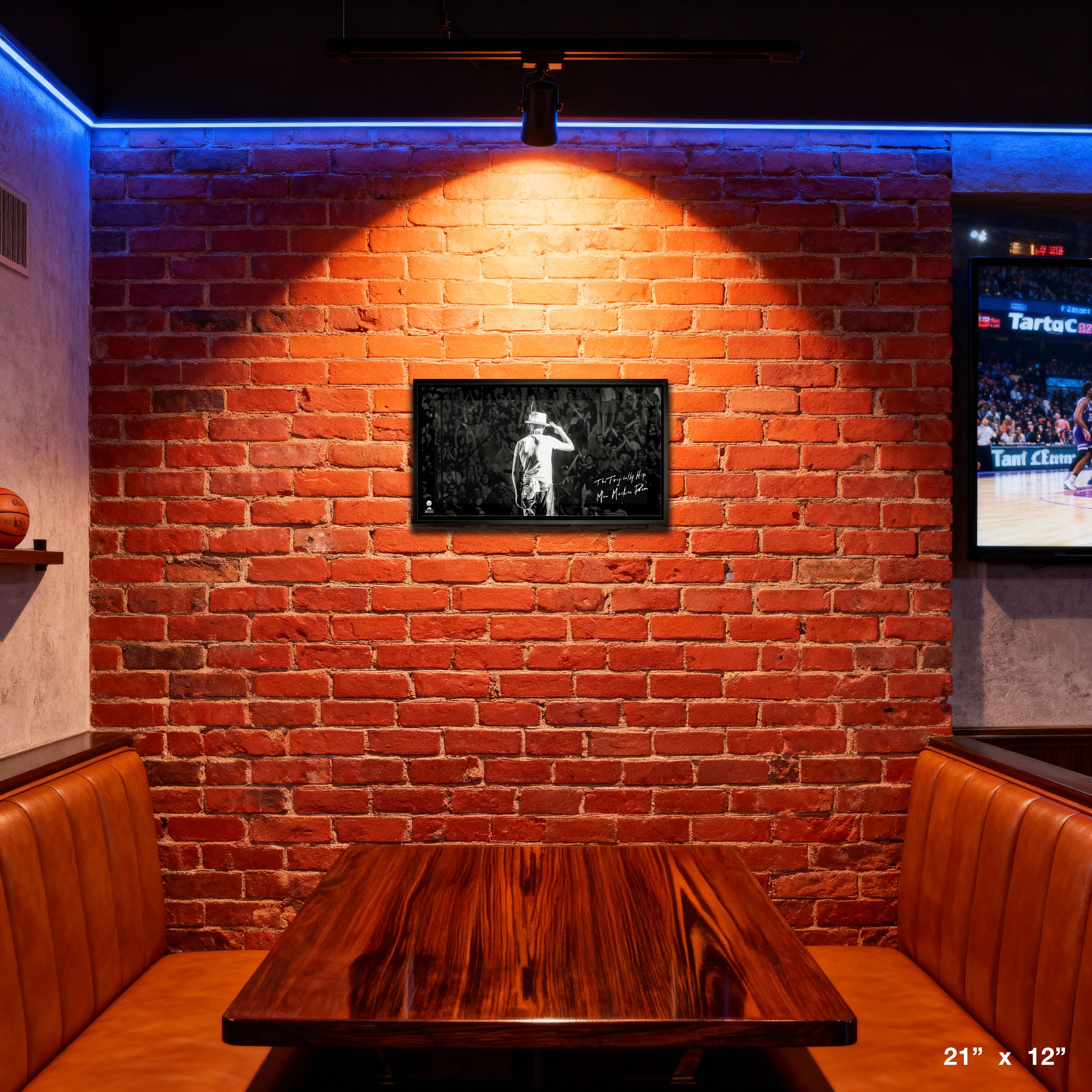 This image of The Tragically Hip is printed on high quality art canvas and then professionally stretched and framed. Made in Canada. Finished Size: 21 x 12"