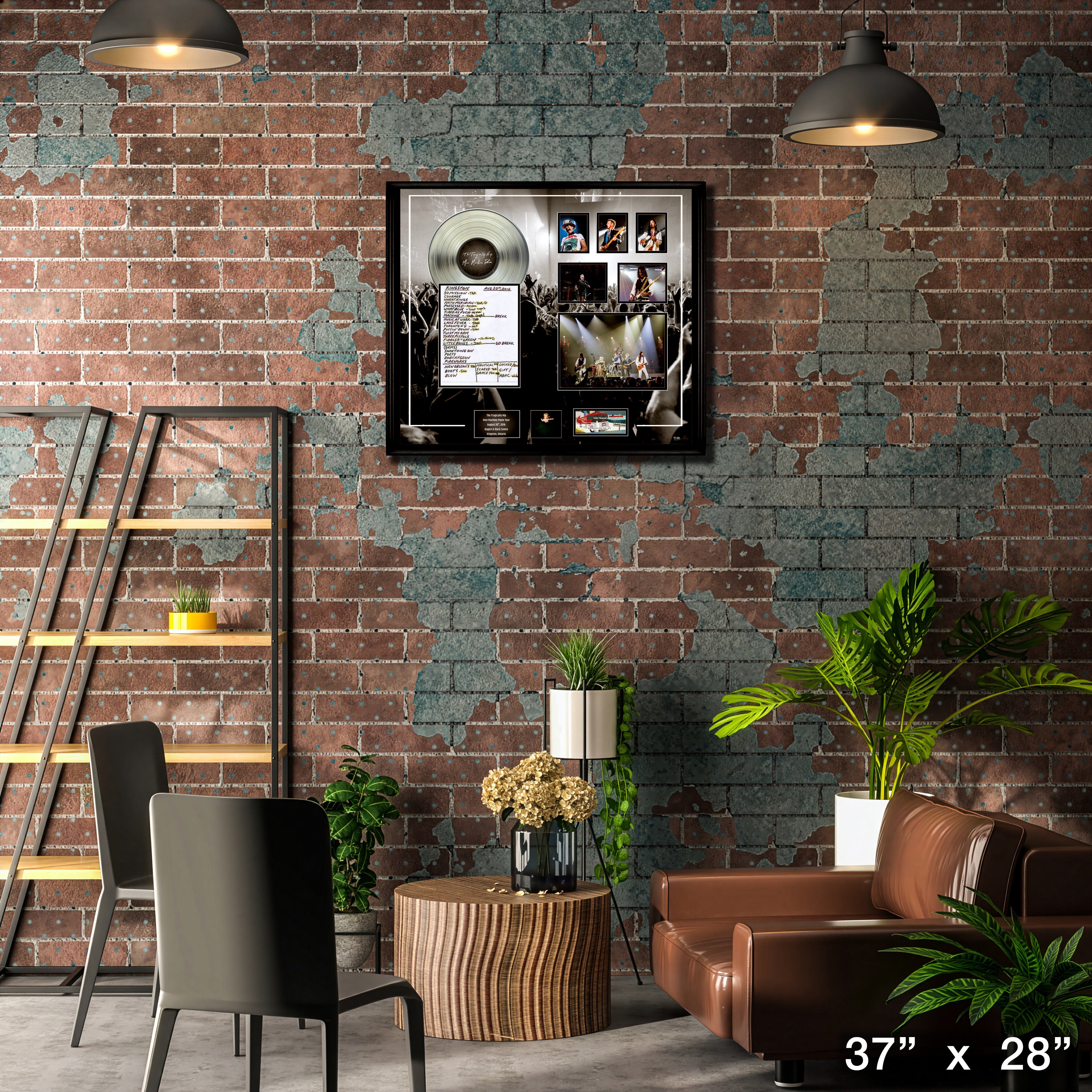 - 🖼️ Framing & presentation: Framed with a clean black molding and precision matting that separates each element — the replica platinum record and set list sit prominently within the composition for immediate visual impact.