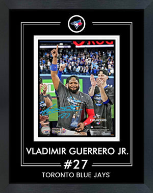 Vladimir Guerrero Jr. Signed Framed 8x10 Photo in PhotoGlass Toronto Blue Jays 2025 American League Champions Game 7 Celebration
