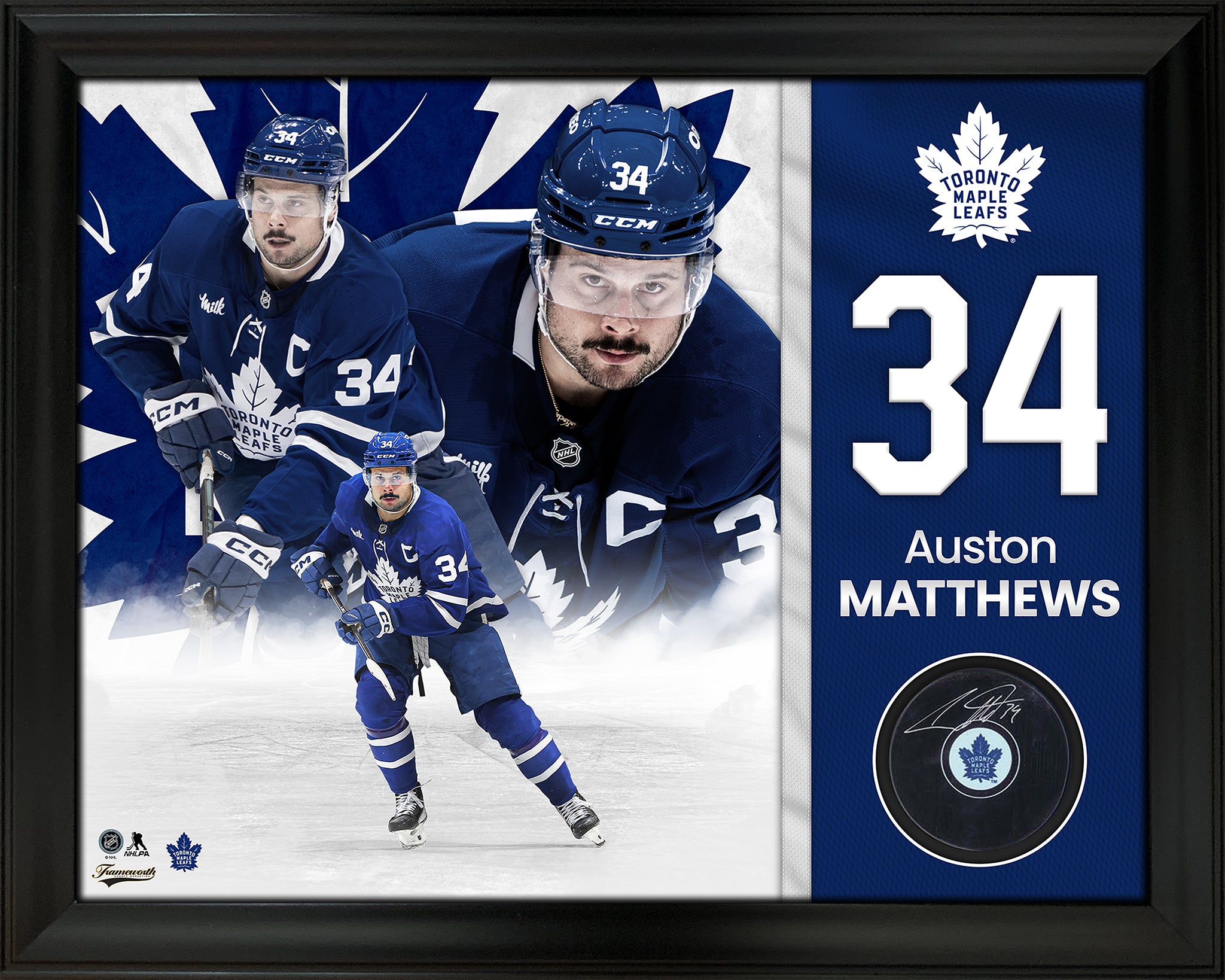 This Toronto Maple Leafs puck comes personally autographed by Auston Matthews before being professionally framed. This puck is officially licensed by the National Hockey League (NHL) and National Hockey League Players Association (NHLPA). It comes with a certificate of authenticity and hologram from Fanatics to ensure authenticity. Signatures may vary. Made in Canada.