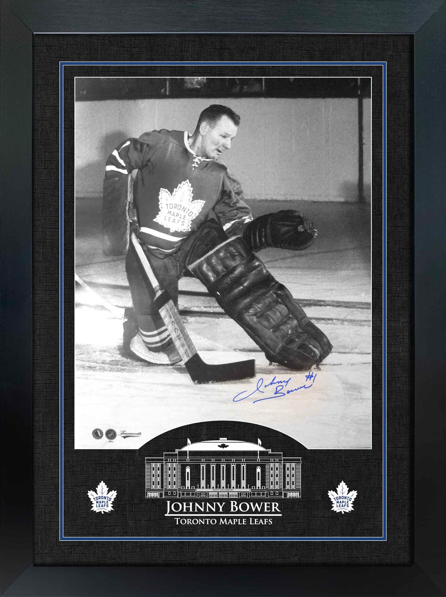 This photo of Johnny Bower comes personally autographed by Johnny Bower himself. This photo is officially licensed by the National Hockey League (NHL) and comes with a certificate of authenticity and hologram from Frameworth to ensure authenticity. Signatures may vary.