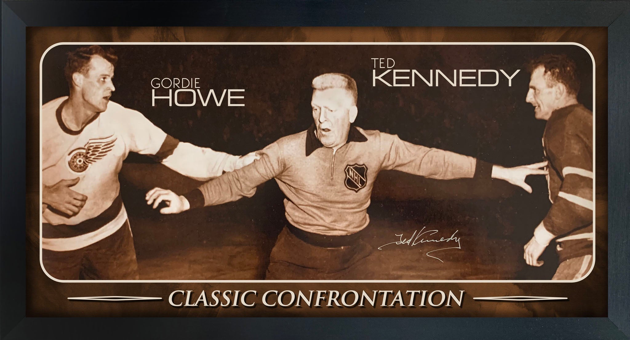 Ted Kennedy Embedded Signature 14x26 PhotoGlass Frame vs Howe Maple Leafs