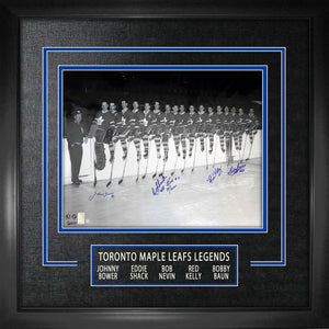 Celebrate the storied history of the Toronto Maple Leafs with this exclusive, limited edition Captains Multi-Signed Framed Print. Featuring the autographs of seven legendary leaders—Darryl Sittler, Rick Vaive, Wendel Clark, Doug Gilmour, Mats Sundin, Dion Phaneuf, and John Tavares—this piece unites generations of Maple Leafs greatness into one striking display. Professionally framed in Canada, the print highlights each captain in action, with portrait backgrounds that reflect their era. Each autograph is hand-signed in bold blue ink, making every piece unique. Only 50 editions exist worldwide, with each one hand-numbered for authenticity. Officially licensed by the NHL, NHLPA, and NHL Alumni, this collectible guarantees genuine signatures and league approval. A true centerpiece for any fan cave, office, or memorabilia collection, it captures the spirit and legacy of one of hockey’s most historic franchises.