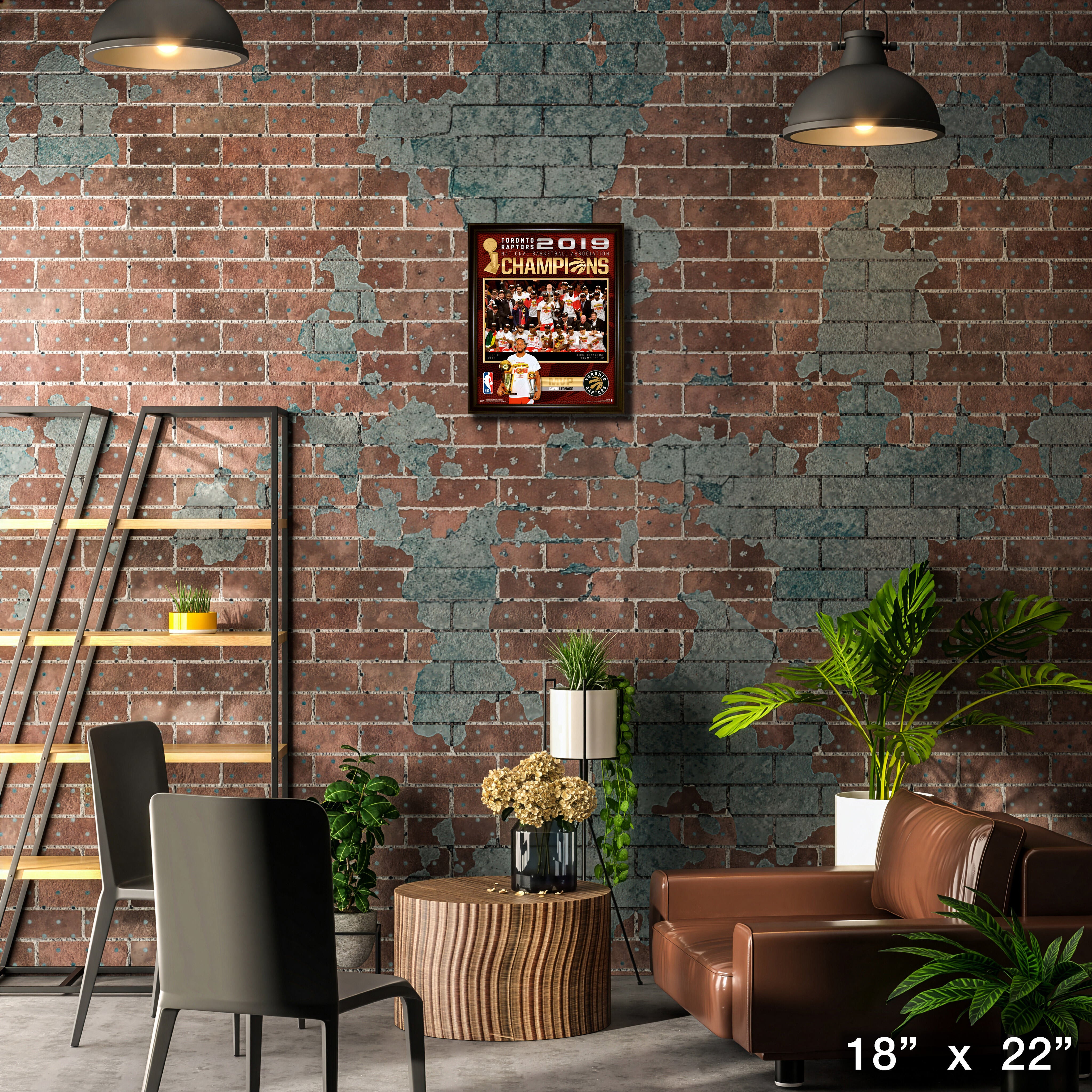 This 16x20 framed champions collage highlights the Toronto Raptors historic and first ever NBA Championship title. At the center of the collage it features a photo of the team, coaches, and management with the Larry O’Brien Trophy. At the top of the collage, the team name is show alongside the acknowledgement that they are regarded as the 2019 NBA Champions. Featured at the bottom, is a photo of Kawhi Leonard holding both the Larry O’Brien trophy and Bill Russell MVP award. During the duration of the playoffs, Leonard helped guide the Toronto Raptors to the NBA finals for the first time in franchise history. Leonard averaged 30 points and was 49% from the field goal, which led him to be awarded the MVP of the playoffs. Since the team was established in 1995, the team was still seeking their first ever NBA Championship title and Finals appearance. After 24 years and a memorable 2019 playoff run, the team who plays in the city referred to as the six, won in game six. Perfect for any home or office. Hang a piece of Raptors finals history with this frame collage. Professionally framed in Canada. Frame size: 18x22