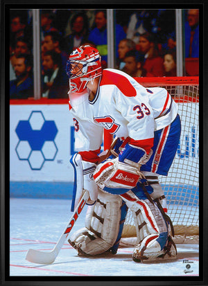 This image of Alex Ovechkin is printed on glass and then professionally framed. This print is officially licensed by the National Hockey League (NHL) and National Hockey League Players Association (NHLPA). Made in Canada. Finished Size: 20x16"