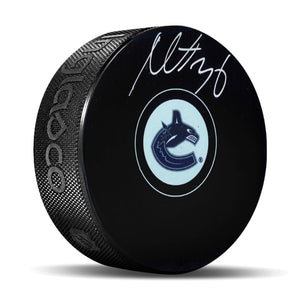 This image of Elias Pettersson is printed on high quality art canvas and then professionally stretched and framed. This canvas is officially licensed by the National Hockey League (NHL) and National Hockey League Players Association (NHLPA). Made in Canada. Finished Size: 22.5 x 31.5"