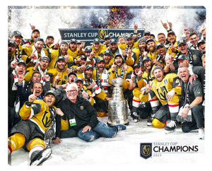 Vegas Golden Knights 16x20 Canvas Banner Raising Team Posed-H