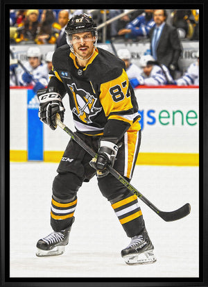 This image of Connor McDavid is printed on high quality art canvas and then professionally stretched and framed. This canvas is officially licensed by the National Hockey League (NHL) and National Hockey League Players Association (NHLPA). Made in Canada. Finished Size: 22.5 x 31.5"