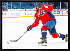 This image of Alex Ovechkin is printed on high quality art canvas and then professionally stretched and framed. This canvas is officially licensed by the National Hockey League (NHL) and National Hockey League Players Association (NHLPA). Made in Canada.