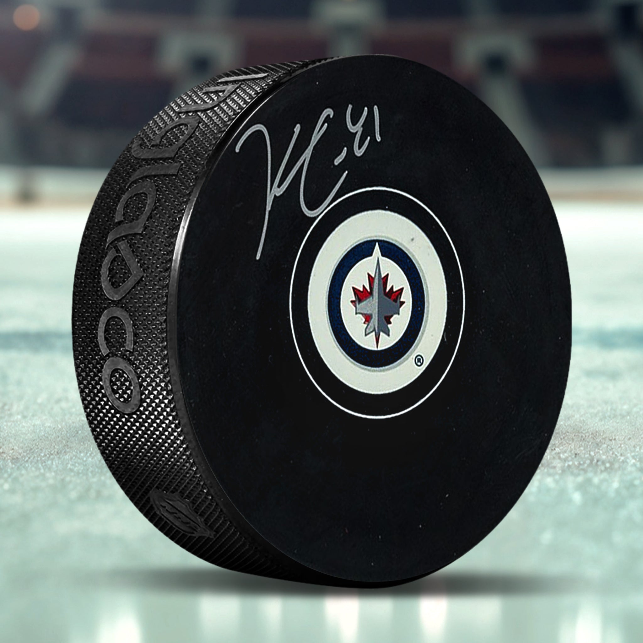 This Winnipeg Jets puck comes personally autographed by Kyle Connor himself. This puck is officially licensed by the National Hockey League (NHL) and National Hockey League Players Association (NHLPA) and comes with a certificate of authenticity and hologram from Frameworth to ensure authenticity. Signatures may vary. Finished Size: 3 x 3"