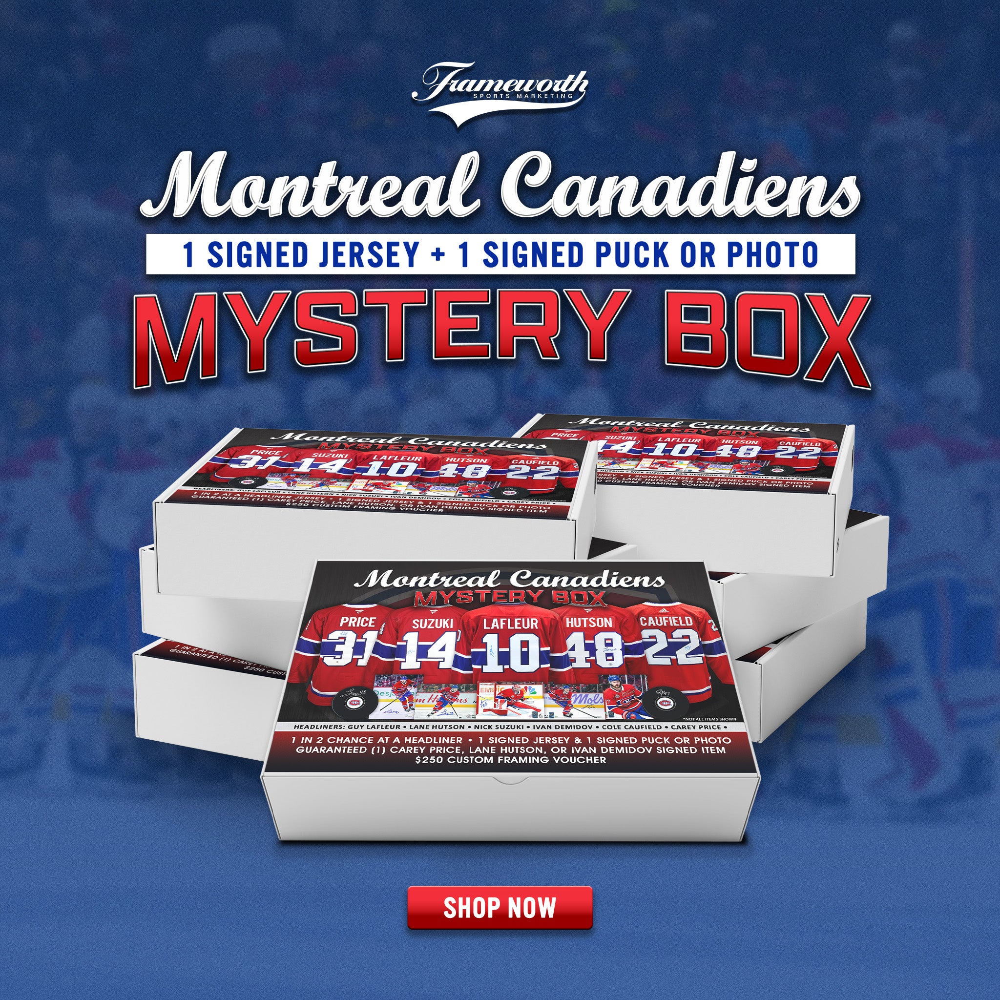 I write this review to caution future buyers. I ordered a Dynamuc Duo Mystery Box for my son and I for Christmas. I thought it would be a fun surprise for both of us to open Christmas morning. It arrived in a big brown box. My son asked if we could open and I said sure as it will be in the Dynamic Duo Mystery Box as shown on the website. It won't ruin the surprise and we can put it under the tree. So we go ahead and open the box and sort out all the packing filler and there is my son standing there holding a Sydney Crosby jersey. So needless to say we are both happy as that is an amazing autograph jersey to receive but if it could have just been packaged as advertised. How great it would have made Christmas morning. It really just looked as if someone at Frameworth just grabbed the jersey and threw it in the box. So again, are we happy, yes but buyer be aware that they don't package their mystery boxes in what you see online. If you are ordering to have the joy of opening and surprise, which a lot of us do in the hobby, don't open the shipping packaging. On another note, I did contact Frameworth about this and never heard back, not even a simple email saying sorry.