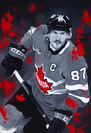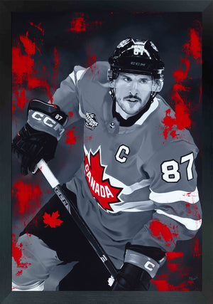 Premium 22.5 × 30″ framed canvas presentation. Dual-signed by Sidney Crosby and Artist Kait Schoeb. Individually hand-numbered.