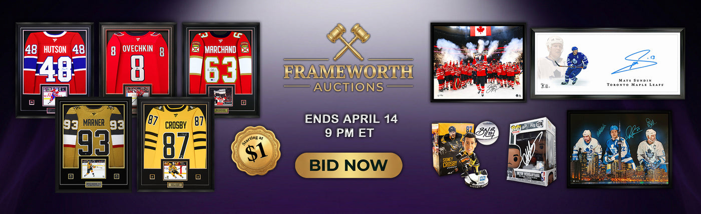 Frameworth Sports Canada is proud to offer officially licensed sports memorabilia from exclusive athletes like Sidney Crosby, Carey Price, John Tavares, Mitch Marner, Morgan Rielly, Alek Manoah, Kevin Gausman, Jordan Romano, and so many more. Shop autographed jerseys, game-used and ready-to-hang products, or check out our custom framing options. Whether you’re looking to support your favourite player, and/or favourite NHL, MLB, NLL team, we have you covered. Browse our sports collectibles or check out our music collections featuring The Tragically Hip and Rush. Frameworth Sports is your trusted source for all your fan cave needs